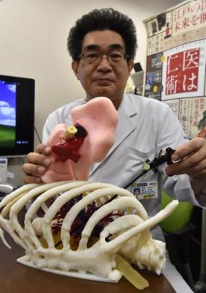 東京慈惠大學醫(yī)院Toshiaki Morikawa教授在用一個3D打印的肺授課