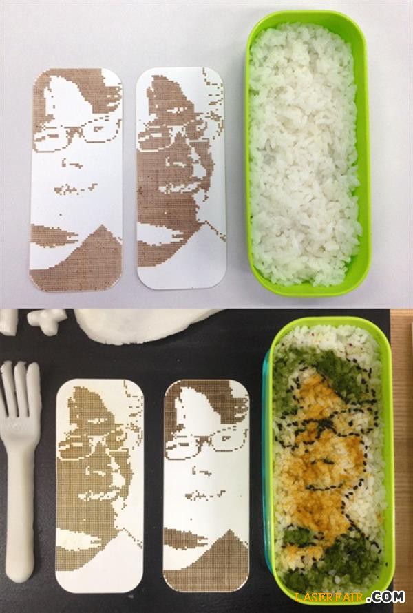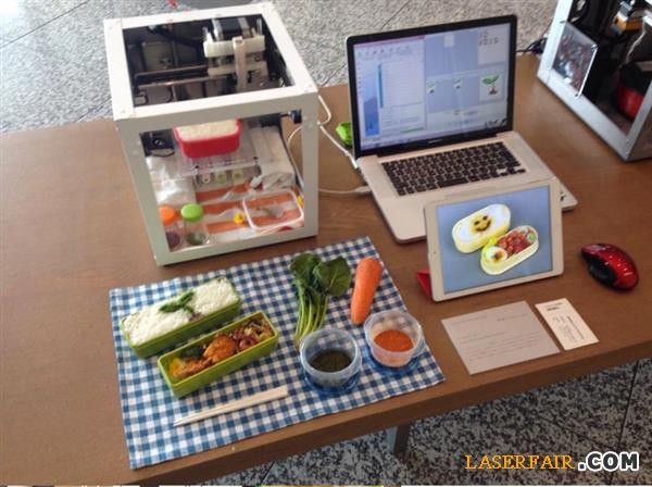 近日,日本慶應(yīng)義塾(Keio)大學(xué)的學(xué)生Yoshihiro Asano對(duì)一臺(tái)普通的Solidoodle 3D打印機(jī)進(jìn)行了改裝,將其變成了一臺(tái)特殊的食品打印機(jī)Lunchbot,這臺(tái)Lunchbot不能干別的,只能使用各種調(diào)料裝飾您的便當(dāng)盒,在米飯上繪出各種有趣的圖案。