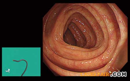 攝像頭的視角達(dá)到170度,支持自主的“NBI(Narrow Band Imaging,窄帶光觀察)”。一般情況下使用由紅藍(lán)綠組成的白色光,而NBI使用藍(lán)色光和綠色光,不用紅色光。這樣,容易看清粘膜表面的血管,便于發(fā)現(xiàn)病變。