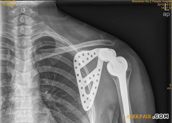 近日,深圳市第二人民醫(yī)院收治了一位27歲女患者,該患者肩胛部位的骨頭已經(jīng)被腫瘤侵蝕四分之三,亟需手術(shù)切除。但是如果貿(mào)然切掉整個肩關(guān)節(jié),不僅手術(shù)風(fēng)險大,恢復(fù)后病人生活也難以自理。于是該院利用3D打印技術(shù)制備出與患者肩胛骨完全匹配的鈦合金假體,置換掉原來腫瘤壞死的肩胛骨,打造了一個新的“肩膀”。