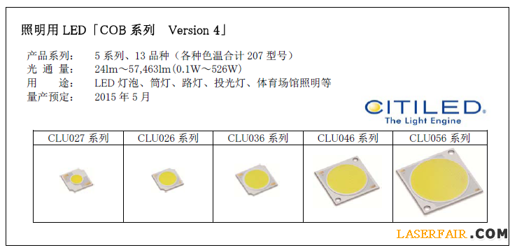 西鐵城在2011 年推出了“COB 系列 1”,從那以后在不斷地向市場推出性能提高產(chǎn)品。這次的“COB 系列4”新產(chǎn)品通過芯片等相關部材的改良和優(yōu)化,比現(xiàn)有產(chǎn)品提高了最大15 %的性能。