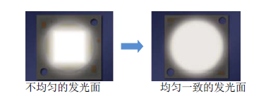 ?考慮了照明器具構成時的光學設計,通過芯片的最佳配置實現(xiàn)了發(fā)光面的均勻一致。