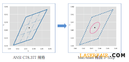 ?對應ANSI C78.377 規(guī)格※4 的大約1/9 的「MacAdam 橢圓3-Step」色度管理基準,幾乎感覺不到LED 的色度偏差(Ra 70 min. 型除外)。