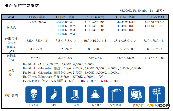 另外,標準型(Ra 80 min.)增加了6,500K 色溫的產(chǎn)品。以207 個型號的產(chǎn)品線來對應多樣化的市場需求。