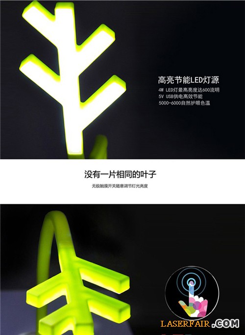 臺(tái)燈的開(kāi)關(guān)為無(wú)極觸控式開(kāi)關(guān),可以隨意調(diào)節(jié)燈光亮度,操作起來(lái)很容易,不同的亮度照出不同的葉子,可以按心情調(diào)節(jié),不走尋常路。