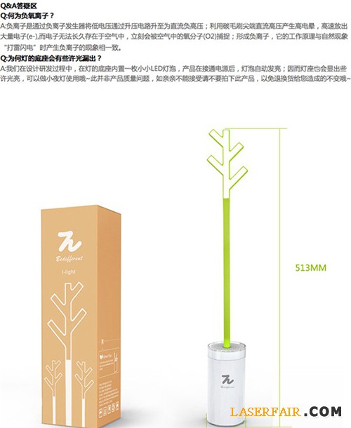 綠色,是生機(jī)的象征,而綠色的植物,不僅美化了環(huán)境,還能給人類(lèi)提供不可或缺的生存因素:氧氣。多呼吸森林中富含的負(fù)離子非常易于健康,多看綠色也對(duì)眼睛有好處,而今天要介紹的這款LED燈就可以做到這兩點(diǎn)。它叫Design-Pie負(fù)離子LED樹(shù)枝臺(tái)燈。