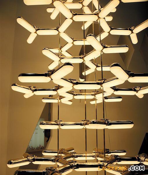 例如耐貝西照明的一款“日食”燈,不像傳統(tǒng)燈泡的直射光,這款燈具的正中間被擋住,就當是“日食”一樣。這種巧妙的設計一來外觀上更出色,二來,經(jīng)過兩次反射,不存在眩光,讓光線看起來更柔和。歐普照明的“雪晶”燈更能詮釋“LED”的卓越性能,透明的六角形薄片與傳統(tǒng)燈具相去甚遠。六角燈具可以隨意拼接,形成一個燈具系統(tǒng),并且可以通過智能控制系統(tǒng),空間每一片燈光的開關,賦予燈具更多的裝飾性和趣味性。來自亮A的“雪花燈”,將燈具設計成棒棒相接的“雪花”,搭配金色、紅色等鮮明的色彩,以及層層疊疊的外形,充滿時尚優(yōu)雅的韻味。
