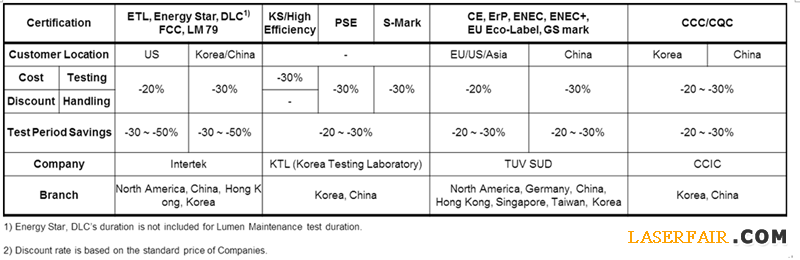 目前韓國(guó)和美國(guó)的許多客戶已經(jīng)減少30 ~ 50%的認(rèn)證費(fèi)用和時(shí)間。以下列表更多信息供參考。