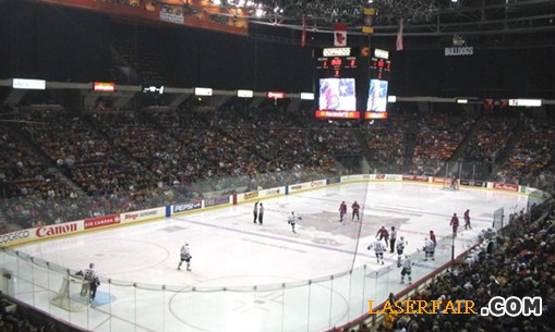 1:雷曼光電LED倒梯型懸掛屏在加拿大冰球館