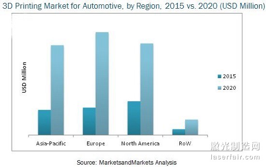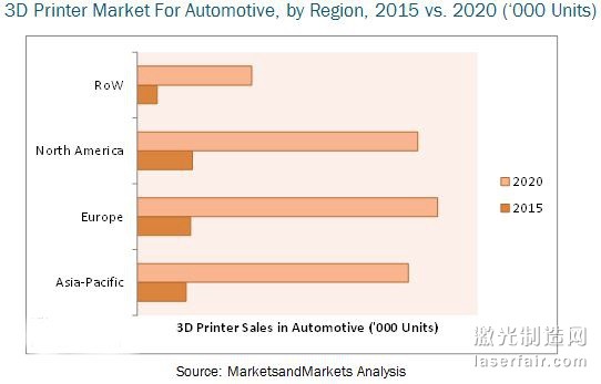 根據(jù)這份報(bào)告,在汽車行業(yè)這個(gè)3D打印的垂直市場(chǎng),北美地區(qū)仍然是領(lǐng)先者,而歐洲和亞太地區(qū)市場(chǎng)仍然位居其后,原因很明顯,比如技術(shù)曝光不足,以及許多人仍然認(rèn)為尚處于起步階段等。