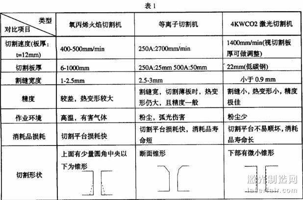 下面列出了激光切割機(jī)與其它兩種切割設(shè)備在參數(shù)直觀簡略的對比: