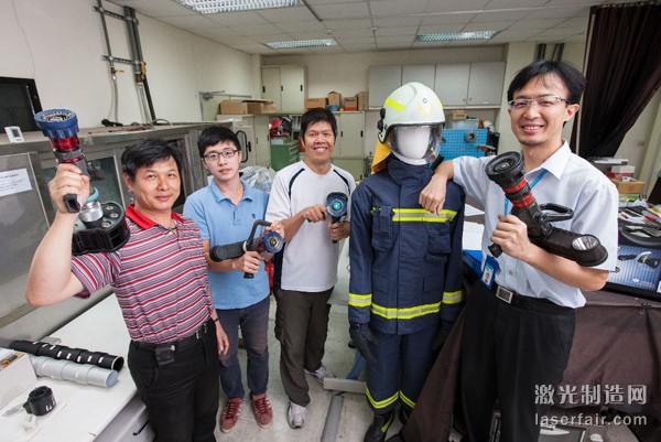 為方便裝卸,工研院研發(fā)的消防瞄子燈采用快接式接頭設計,只需30秒就能組裝完成,而且接頭可旋轉,隨時改變燈光方向,也適合左撇子消防隊員持握。