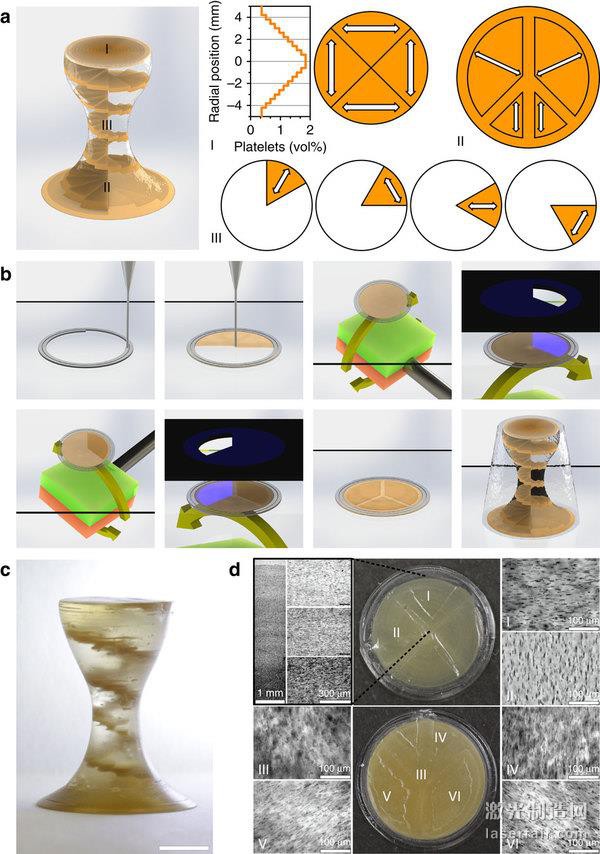 為了展示自己開發(fā)的MM-3D打印平臺所具備的定向、復(fù)合和形狀控制能力,研究人員打印出了一個具有復(fù)雜形狀以及與自然界完全不同的非均質(zhì)精細(xì)微結(jié)構(gòu)的3D對象(見上圖)。他們將這個對象成為“螺旋”,該對象的外部呈現(xiàn)了各種不同的凸起和凹陷的曲面,而其內(nèi)部則將眾多小片匯集成螺旋樓梯的形式,從底部一直延伸到頂部。整個對象的大小僅為18毫米,其圓形底座直徑為16毫米,頂部直徑為10毫米,總共由60個圓形層組成??茖W(xué)家們稱,這種極端復(fù)雜的小尺寸3D打印對象代表了一種更加先進(jìn)的人造物體,這種物體比以前更加接近于生物材料和植物系統(tǒng)中那種豐富、復(fù)雜、高效的幾何形式。