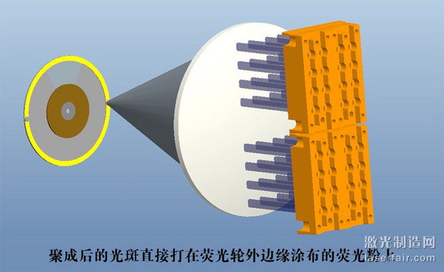 如果既要確保高亮度又要長壽命,可以采用十倍于轉(zhuǎn)盤型熒光體照射強度的激光照射在滾筒型熒光體上,這樣滾筒型激光熒光光源可以實現(xiàn)轉(zhuǎn)盤型激光熒光光源十倍的亮度輸出與十倍的壽命。