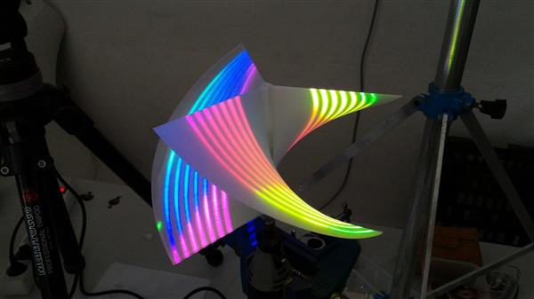 簡(jiǎn)單地說,他們使用了一臺(tái)大尺寸的German RepRap X400 3D打印機(jī)打印出了一個(gè)精準(zhǔn)的大型雙螺旋結(jié)構(gòu)。這種結(jié)構(gòu)的尺寸為125毫米×125毫米,并用一種半透明的白色PLA材料制成,這種螺旋的作用就是放置在一個(gè)旋轉(zhuǎn)臺(tái)上充當(dāng)投影表面。與此同時(shí),該螺旋會(huì)跟投影儀和反射鏡形成一個(gè)特定的角度。