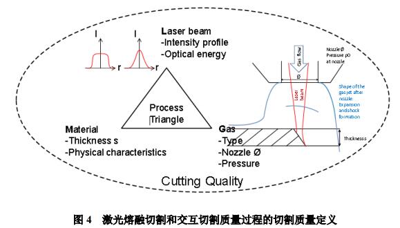 基于聚焦激光束與切割前端的相互作用,定義材料中激光束能量依賴(lài)波長(zhǎng)特征吸收為熱過(guò)程,如圖 4??捎玫哪芰繒?huì)加熱、熔化、部分汽化以及液化材料。