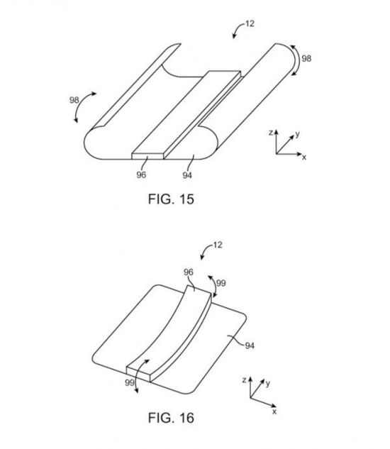 該專利也指出柔性設(shè)備因?yàn)槲兆矒袅Φ哪芰?,而更耐跌落和破壞。蘋果公司指出,這項(xiàng)專利可以用在iPhone,iPad上,和其他穿戴設(shè)備當(dāng)中。