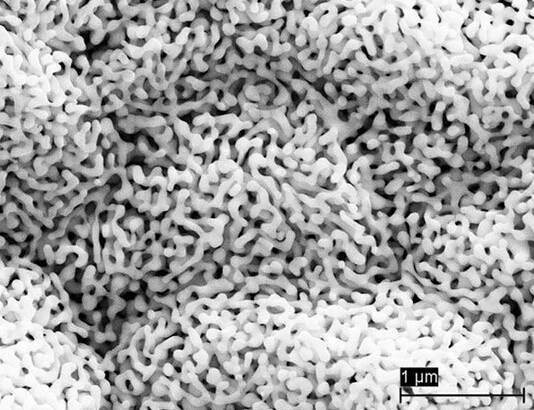 可是,直到另一種LED大燈的出現(xiàn),才讓奧迪的矩陣大燈顯得不夠高效。弗勞恩霍夫研究所研制出了一款LED大燈,這種大燈由4個(gè)LED點(diǎn)列組成,其中每個(gè)點(diǎn)陣有256個(gè)發(fā)光像素,每個(gè)像素單元都能獨(dú)立控制,這樣一來(lái)可獨(dú)立控制的LED數(shù)量多了幾十倍,自然大燈可變的照明模式也增加了不少。最關(guān)鍵是,獨(dú)立控制LED單元可以選擇永久性的關(guān)閉,這可比奧迪通過(guò)遮擋實(shí)現(xiàn)要高明多了。不過(guò),這種大燈的難點(diǎn)在于為了獨(dú)立控制每個(gè)獨(dú)立像素,每個(gè)發(fā)光像素就得和驅(qū)動(dòng)芯片連接,兩者之間的距離僅有15微米。為解決這個(gè)難題,研究人員用上了一種新材料:一種用黃金做成的納米級(jí)海綿,這種海綿就像真的海綿一樣具有很強(qiáng)的壓縮性,能夠精確地適應(yīng)組件表面的起伏。