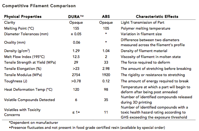 據(jù)ALGIX 3D公司稱(chēng),DURA比ABS具有更好的材料性能,毒性較低,揮發(fā)性也比較低,并且是環(huán)境可持續(xù)的。