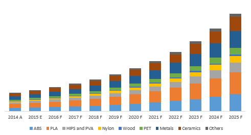 該市場可以按材料類型、應(yīng)用、區(qū)域等進行分類。比如,如果根據(jù)線材類型進行分類,該市場可以細(xì)分為ABS、PLA、HIPS和PVA、尼龍、聚酯、陶瓷等。在價值方面,2015年P(guān)LA部分估計要占整個中東3D打印市場份額的22.3%。這部分在預(yù)測期內(nèi)將獲得16.7%的年復(fù)合增長率。除此之外,金屬材料部分增長顯著,預(yù)計在不久的將來將錄得持續(xù)增長。
