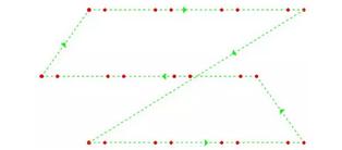 早期的激光切割機(jī)的空程如下圖所示,切割頭要次第完成三個(gè)動(dòng)作:上升(到足夠安全的高度)、平動(dòng)(到達(dá)點(diǎn)B的上方)、下降。