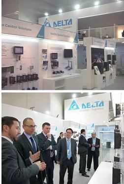 臺(tái)達(dá)在現(xiàn)場(chǎng)展示了完整的自動(dòng)化產(chǎn)品線和技術(shù)實(shí)力,通過(guò)對(duì)工廠整合控制平臺(tái)及云端系統(tǒng)的互動(dòng)展示,臺(tái)達(dá)提供遠(yuǎn)距制程控制的體驗(yàn)。新品部份,臺(tái)達(dá)推出新款的高階泛用型控制器、工業(yè)計(jì)算機(jī)、精巧型變頻器、高防護(hù)等級(jí)風(fēng)機(jī)水泵專(zhuān)用變頻器、六軸垂直關(guān)節(jié)機(jī)器人等,并建構(gòu)整合性工廠控制平臺(tái)、智慧機(jī)器人工作站、多水泵控制、包裝、電源治理、CNC控制等自動(dòng)化解決方案,以展現(xiàn)高階、智能的自動(dòng)化技術(shù);智慧機(jī)器人工作站的部分,臺(tái)達(dá)推出了最新的六軸垂直關(guān)節(jié)機(jī)器人和臂長(zhǎng)達(dá)600mm的SCARA機(jī)器人,并以動(dòng)態(tài)機(jī)臺(tái)進(jìn)行多角度插件、追蹤涂膠等加工模擬,在漢諾威現(xiàn)場(chǎng)展現(xiàn)高速、高精的控制、加工能力。