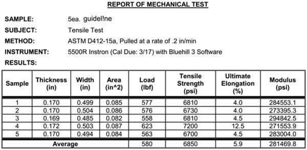 拉伸強(qiáng)度:6,850 PSI(高于他們最強(qiáng)的TECH-G)