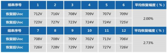 表3 已出現(xiàn)PID的組件經(jīng)PID模塊修復(fù)后的實(shí)際效果