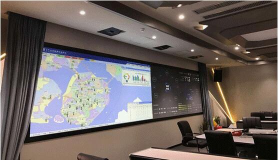 最新完工的廈門市公安局指揮情報中心激光工程投影項目,由3臺光峰6000流明超短焦激光投影機構成,0.233超低投射比,不用擔心人員通過造成的光線遮擋問題,機器采用隱藏式吊裝的方式,支架安裝,快速便捷,顯示面積13㎡。同等尺寸大小的顯示大屏,使用市面上常見的480mm*480mm箱體,至少需要50個箱體拼接而成,固定箱體尺寸造成畫面拼接大小限制,加上支架鋼結構等安裝時間,相比之下,激光工程投影機才是項目安裝的最佳拍檔。