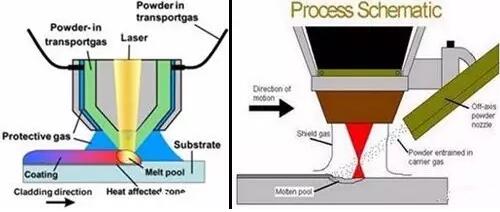 預(yù)置式激光熔覆(左)與同步式激光熔覆(右)原理圖