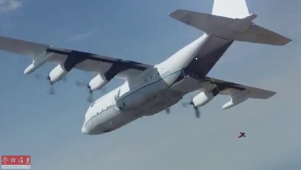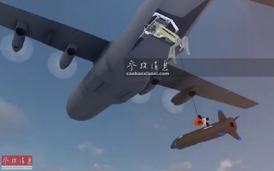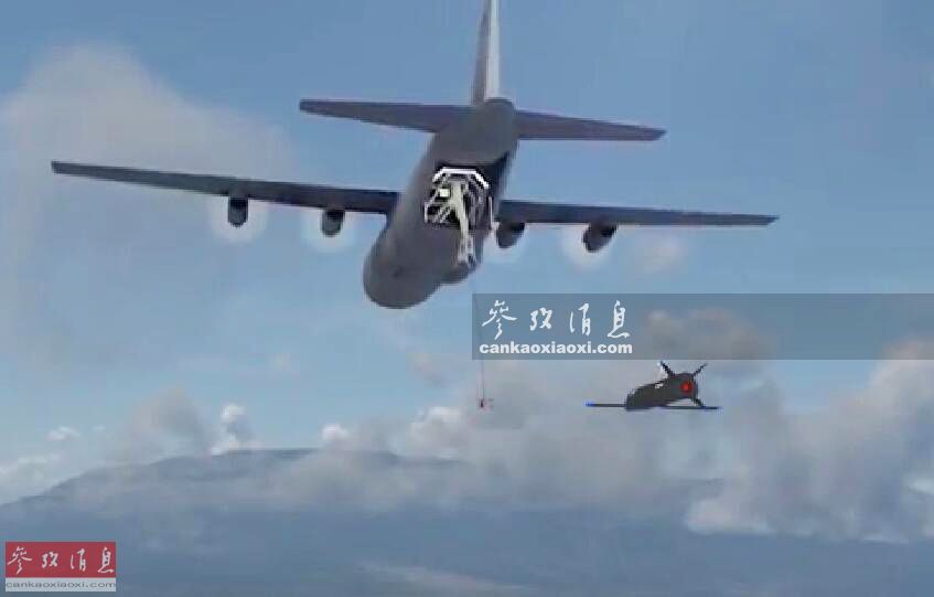 圖為C-130“空中母艦”釋放回收裝置,準(zhǔn)備回收“小魔怪”。