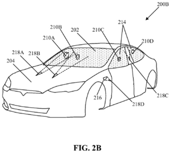 從專利圖中可以看出,該系統組件被安裝在汽車“引擎蓋”下方靠近前擋風玻璃的位置,“引擎蓋”上會探出兩個出口,就像所有汽車引擎蓋上的出水口一樣,不過它們噴射的不是水,而是激光束。特斯拉解釋說,該系統還可以自動清除任何阻礙自動駕駛汽車攝像頭視野的碎片。