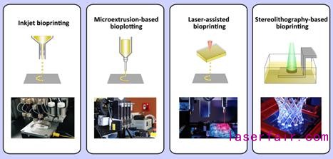 在過(guò)去不到20年的研究時(shí)間里,清華大學(xué)、哈佛大學(xué)、MIT等多所大學(xué)和研究機(jī)構(gòu)開(kāi)發(fā)了多種細(xì)胞打印技術(shù),根據(jù)使能方式的不同可分為四大類:微滴噴墨技術(shù)、擠出式生物繪圖技術(shù)、激光輔助細(xì)胞打印、立體光刻細(xì)胞打?。ㄈ鐖D2所示)。這些技術(shù)各有其獨(dú)特優(yōu)勢(shì)、局限性以及適用范圍,人們可以需要根據(jù)具體情況和需求選擇合適的技術(shù)。
