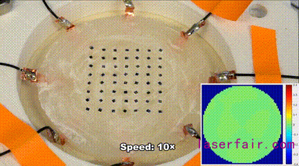費(fèi)了這么大一番力氣打印在器官表面上的電子傳感器當(dāng)然不一般。如下圖所示,這種電子柔性傳感器由離子水凝膠與EIT技術(shù)結(jié)合制成的,能夠檢測(cè)并監(jiān)視器官的健康狀況。