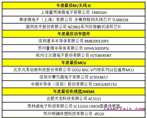 “2020年度中國 IC 設(shè)計成就獎”的獲獎?wù)呔蓮氖码娮庸こ淘O(shè)計的用戶和讀者投票產(chǎn)生,獲獎名單如下 (獎項及得獎?wù)吲琶环窒群?: