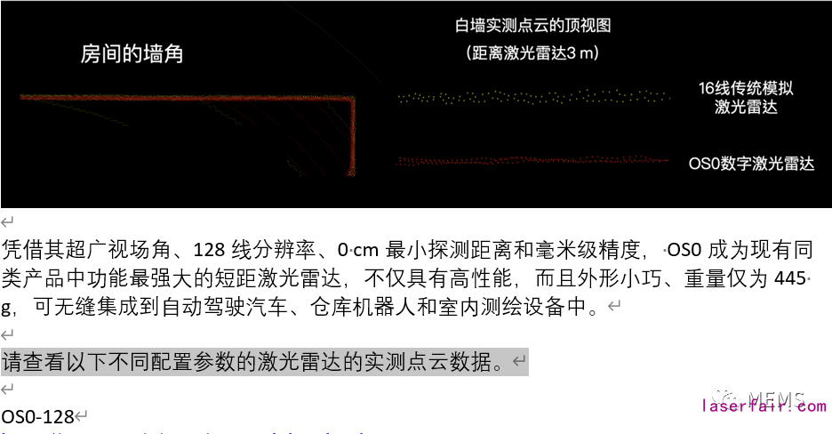 “OS0每秒輸出點(diǎn)數(shù)為260萬個,是現(xiàn)有市場上短距激光雷達(dá)的5倍?!?/p>