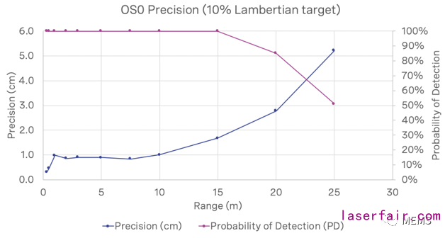 OS0精度實(shí)測 – 目標(biāo)物體反射率為10%: