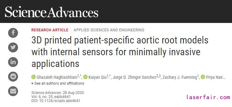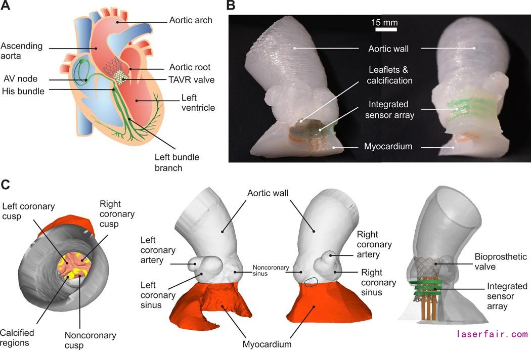 該研究于8月28日發(fā)表在《科學(xué)進(jìn)展》(Science Advances)雜志,題為“3D printed patient-specific aortic root models with internal sensors for minimally invasive applications”。