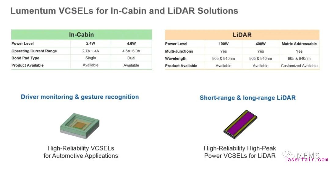 Lumentum為3D傳感和車載應(yīng)用提供全面的激光解決方案