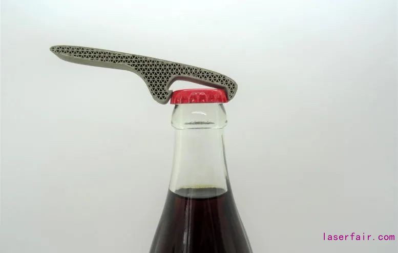 IWARI的“熔融長絲制造”(FFF)打印工藝使用熱塑性長絲,其中嵌入了金屬或陶瓷的顆粒。打印完成后,這個(gè)被稱為“綠色車身”的部件將經(jīng)過熱處理以去除塑料,只留下金屬或陶瓷部件。這個(gè)工作用的開瓶器已經(jīng)用不銹鋼進(jìn)行3D打印,以達(dá)到太空質(zhì)量標(biāo)準(zhǔn),僅使用了現(xiàn)成的臺(tái)式3D打印機(jī)。