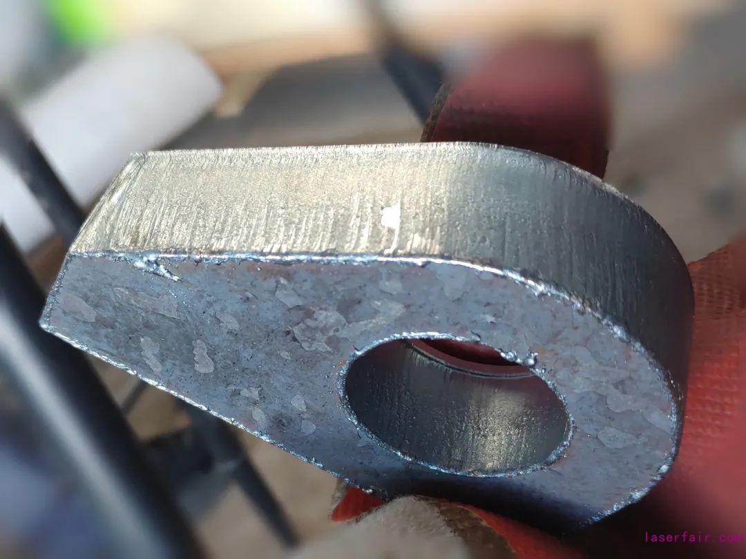 雖然速度比氧氣切割快,但隨著板材厚度的增加,下表面的掛渣逐漸增多。