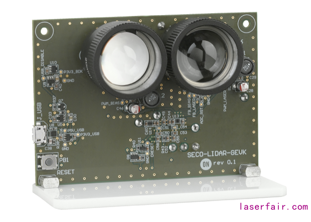 該參考套件的目標(biāo)距離在11厘米至23米之間。它含針對(duì)650至1050 nm信號(hào)優(yōu)化的平凸透鏡,及一個(gè)905 +/- 5nm帶通濾光片和905 nm激光二極管發(fā)射器。