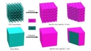 可以將電極中的材料打印成三維晶格結(jié)果。晶格意味著電極具有更大的暴露表面積,增大化學(xué)反應(yīng)面積,電池效率更高。另外,3D打印電池模塊不需要多余的物質(zhì)即可以實現(xiàn)一體化。想象一下,特斯拉85kWh電池組由7104個電池組成,將7104塊電池粘合在一起的膠水和電線的重量相當(dāng)大了。但是如果這些變成是增材制造過程的一部分,而不是多余的材料,能量密度將大大提高。