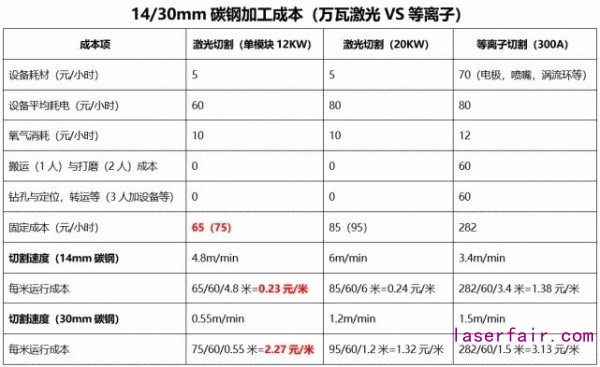 但是,在厚板切割方面,千瓦級(jí)激光器的加工厚度依然存在局限,以致厚板切割依舊需要依靠等離子切割。萬(wàn)瓦激光推出后,可切板材厚度持續(xù)突破,加工效率、成本、效果等各方面也都優(yōu)于等離子切割等傳統(tǒng)切割方式,瞬間捕獲大批終端用戶的“芳心”。