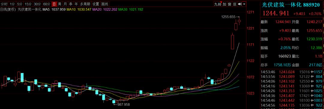 近日,國(guó)家能源局發(fā)布了關(guān)于屋頂分布式光伏開發(fā)試點(diǎn)的通知,市場(chǎng)反響熱烈,連日來,光伏建筑一體化概念股票全線大漲,多只個(gè)股漲停。▲光伏建筑一體化(BIPV)概念暴漲