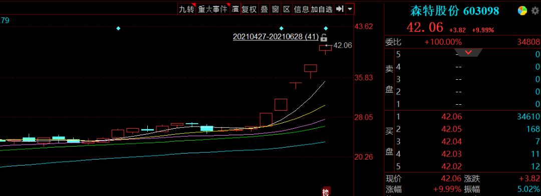 圍護(hù)領(lǐng)域森特股份龍頭地位穩(wěn)固,在隆基股份正式簽署戰(zhàn)略合作協(xié)議,攜手進(jìn)軍光伏建筑一體化(BIPV)市場(chǎng)后,森特股份一度三個(gè)月暴漲300%,從上周二至今,連續(xù)收獲了五個(gè)漲停板。▲森特股份連續(xù)漲停