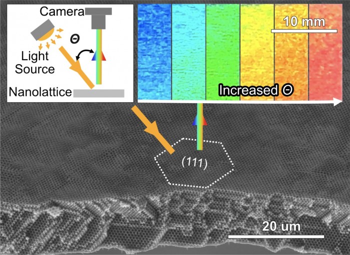 這些空隙的精確間隔不僅使金屬木具有鈦的強(qiáng)度,而重量卻只有鈦的一小部分,而且還具有獨(dú)特的光學(xué)特性。因?yàn)榭p隙之間的空間大小與可見光的波長相同,所以金屬木材反射的光會(huì)產(chǎn)生干擾,以增強(qiáng)特定的顏色。增強(qiáng)的顏色變化是基于光線從表面反射的角度,使其具有耀眼的外觀和用作傳感器的潛力。