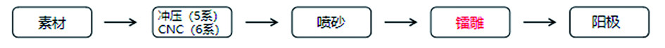在整個加工制程中,如圖4陽級環(huán)節(jié)一般采用H2SO4陽極氧化法,在材料表面生成致密的陽極氧化膜,具有增加耐腐蝕性、提高硬度、表面絕緣等作用,陽極制程中染色可染成多種顏色,如某手機的玫瑰金、粉色、藍色等等,起到裝飾作用。