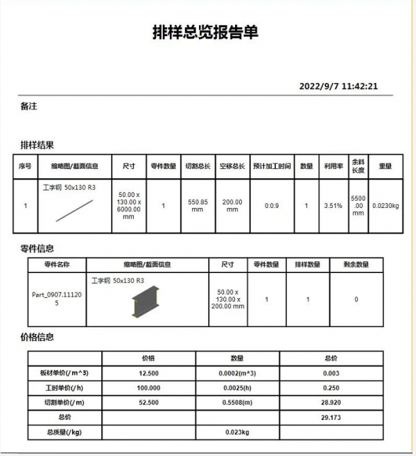 WiseCAM Tube提供豐富的報告數(shù)據(jù),包括加工效率數(shù)據(jù)、材料用量數(shù)據(jù)、產(chǎn)量數(shù)據(jù)及報價數(shù)據(jù),為各家鋼結(jié)構(gòu)生產(chǎn)企業(yè)提供有力的生產(chǎn)管理數(shù)據(jù)支持。 企業(yè)利用報告單,可以更加合理地規(guī)劃生產(chǎn),合理化運(yùn)營管理,提高企業(yè)能效。