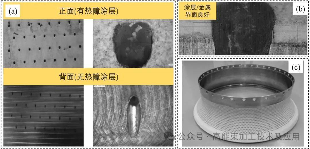 (c)帶熱障涂層火焰筒氣膜孔一次性制孔實(shí)物